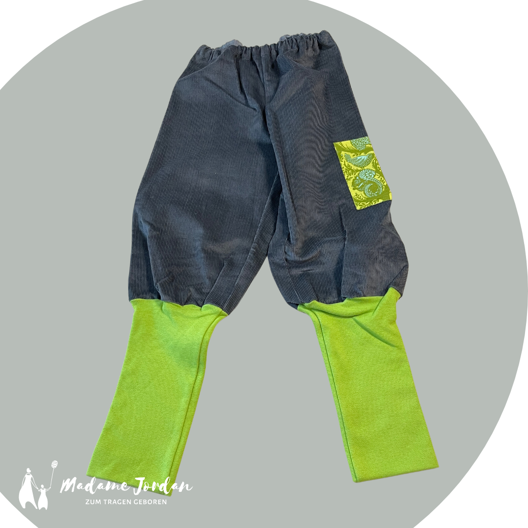 Unsere Knickebocker ist ein absolutes Must-Have .. bequem, mitwachsend und perfekt für kleine Sammler. In der Tasche finden die wahren Schätze ihren Platz . Die Hose ist für Stoffwindeln und/oder zum Babytragen entwickelt und unterstützt die Autonomie deines Kindes, da sie die Hose sehr schnell selbständig anziehen können. Kein störendes breites Bündchen am Bund. Über ein Knopfloch kann der Gummi einfach ausgewechselt oder auch enger/weiter gemacht werden. Dadurch ist sie sehr langlebig und übersteht mehrere Kinder.