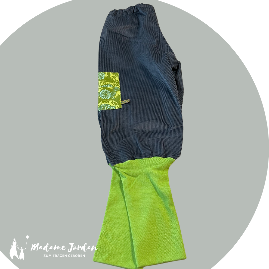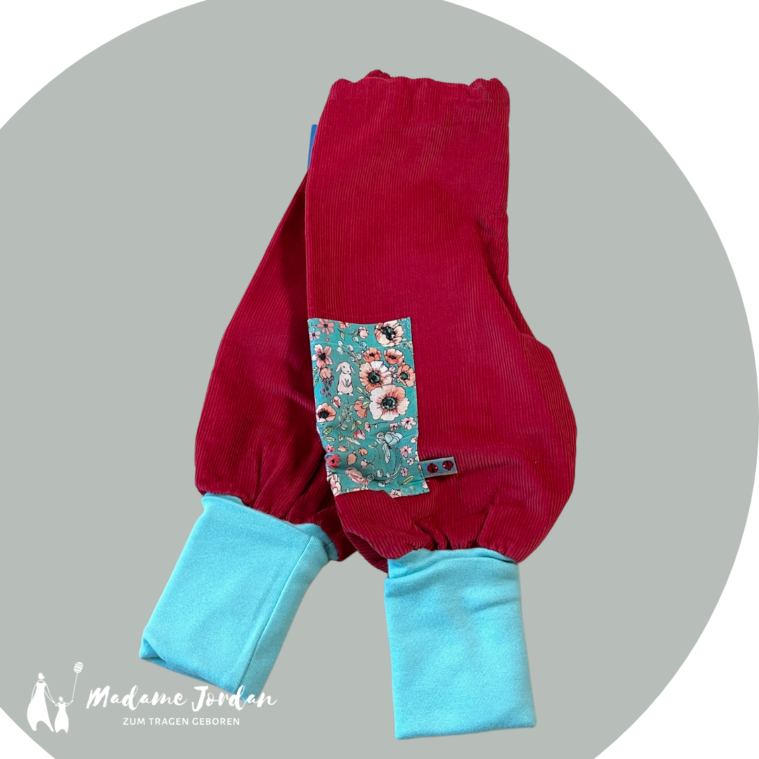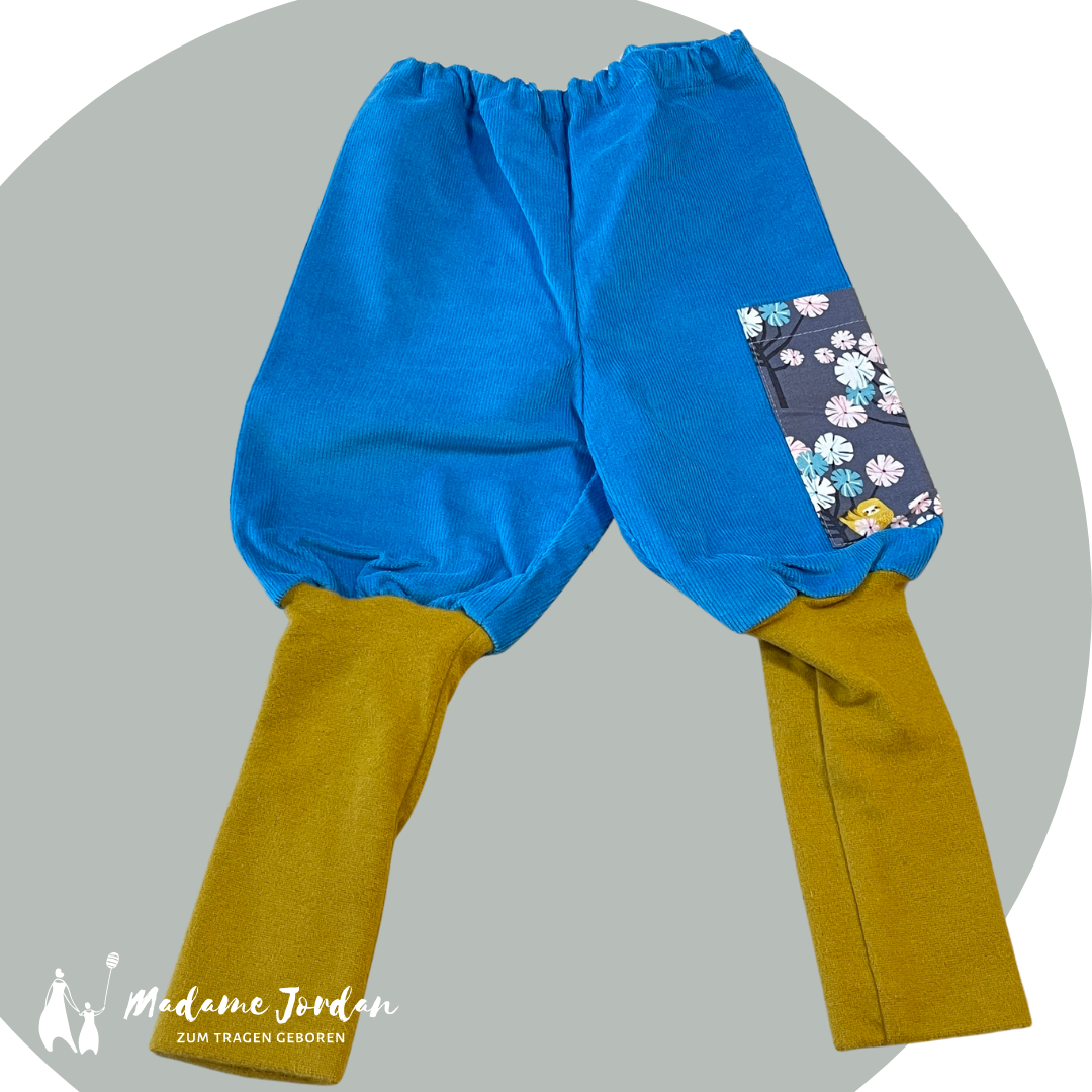 Unsere Knickebocker ist ein absolutes Must-Have .. bequem, mitwachsend und perfekt für kleine Sammler. In der Tasche finden die wahren Schätze ihren Platz . Die Hose ist für Stoffwindeln und/oder zum Babytragen entwickelt und unterstützt die Autonomie deines Kindes, da sie die Hose sehr schnell selbständig anziehen können. Kein störendes breites Bündchen am Bund. Über ein Knopfloch kann der Gummi einfach ausgewechselt oder auch enger/weiter gemacht werden. Dadurch ist sie sehr langlebig und übersteht mehrere Kinder.