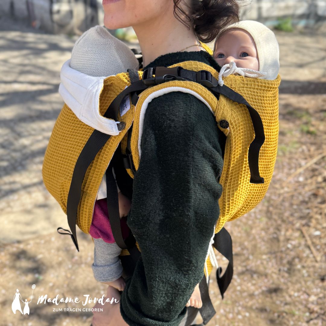 Produktinformationen "Twinset - Mr X & Twin Rückenteil - Fullbuckle Babytrage für Zwillinge - Waffles senfgelb Gr. 2"