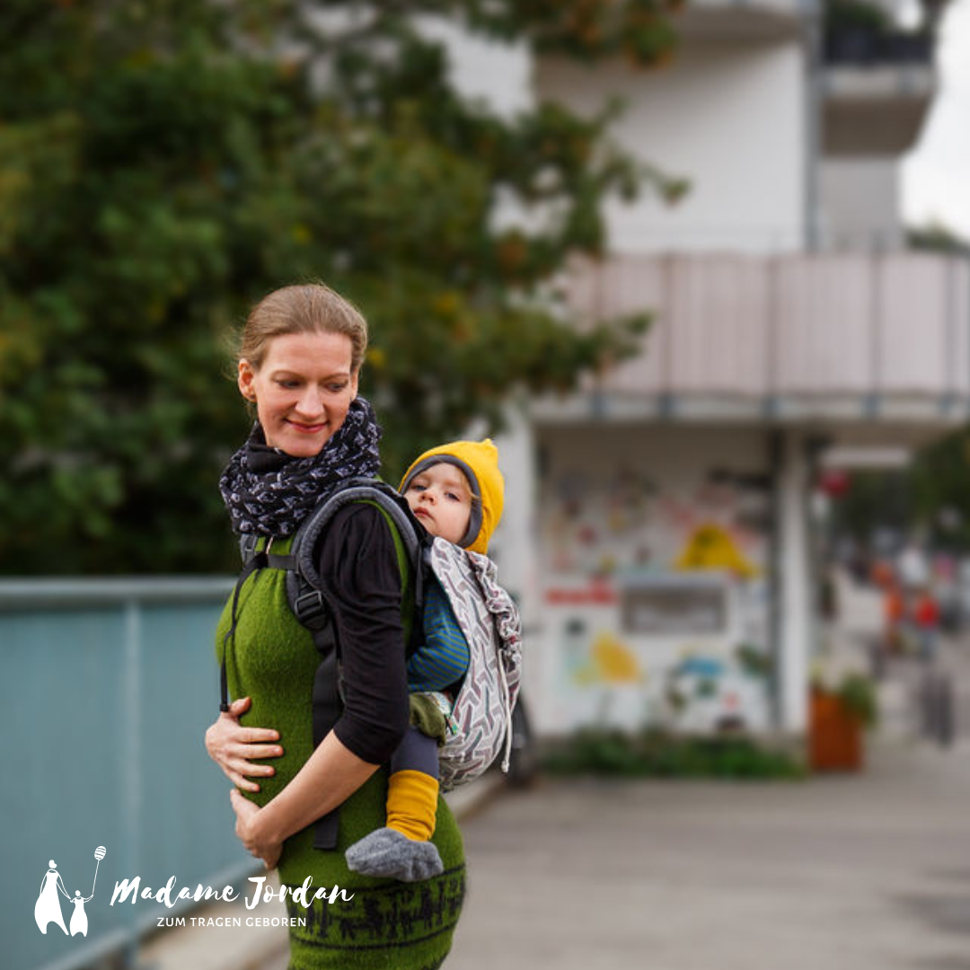 Tragen in der Schwangerschaft ist grundsätzlich möglich. Gleichzeitig gibt es keine pauschale Antwort, die für alle gilt. Entscheidend sind der Schwangerschaftsverlauf, dein körperliches Empfinden und eine Trageweise, die sich an die veränderten Bedingungen anpasst.