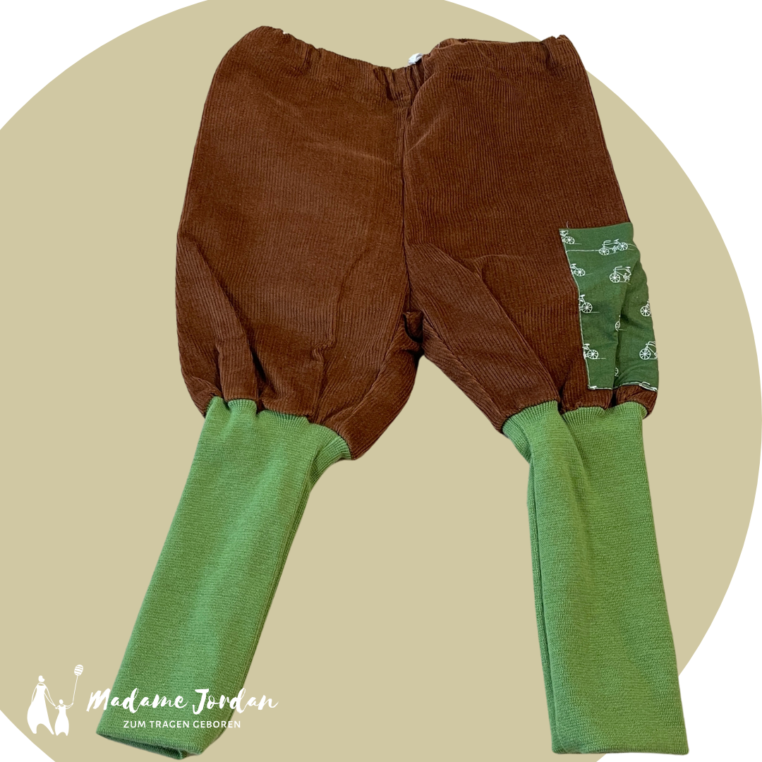 Unsere Knickebocker ist ein absolutes Must-Have .. bequem, mitwachsend und perfekt für kleine Sammler. In der Tasche finden die wahren Schätze ihren Platz . Die Hose ist für Stoffwindeln und/oder zum Babytragen entwickelt und unterstützt die Autonomie deines Kindes, da sie die Hose sehr schnell selbständig anziehen können. Kein störendes breites Bündchen am Bund. Über ein Knopfloch kann der Gummi einfach ausgewechselt oder auch enger/weiter gemacht werden. Dadurch ist sie sehr langlebig und übersteht mehrere Kinder.