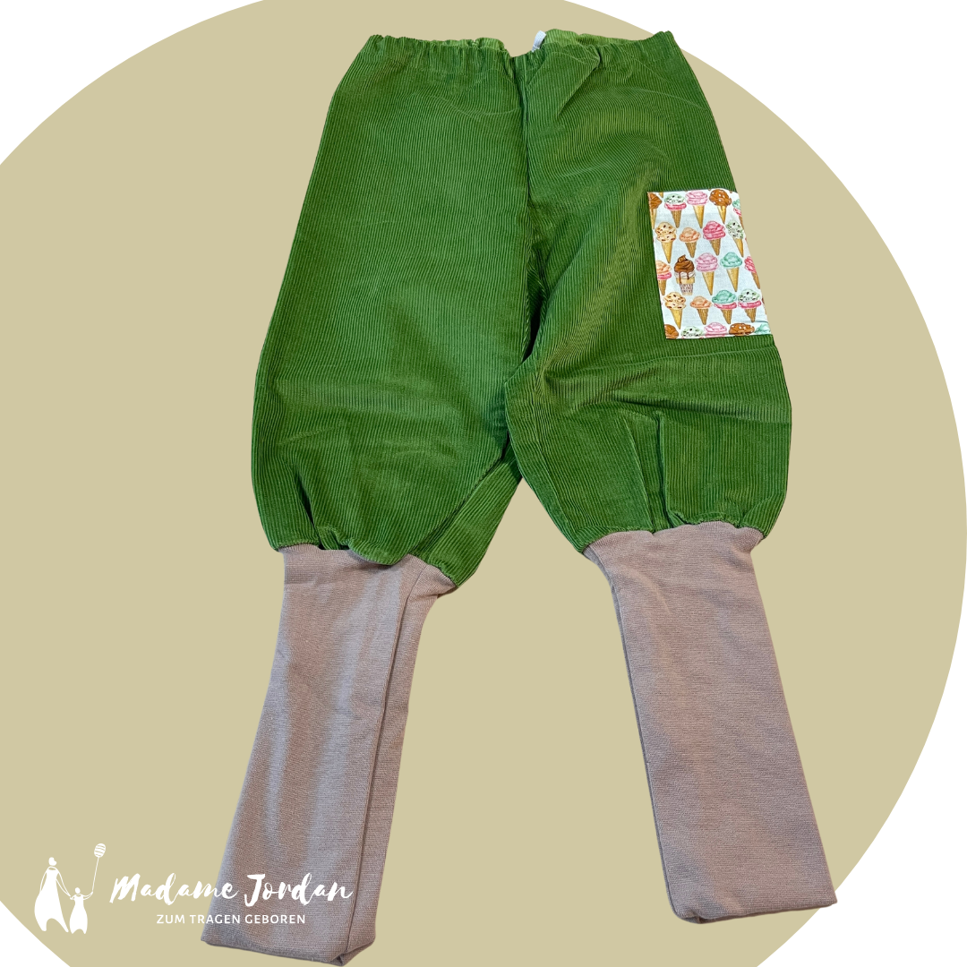 Unsere Knickebocker ist ein absolutes Must-Have .. bequem, mitwachsend und perfekt für kleine Sammler. In der Tasche finden die wahren Schätze ihren Platz . Die Hose ist für Stoffwindeln und/oder zum Babytragen entwickelt und unterstützt die Autonomie deines Kindes, da sie die Hose sehr schnell selbständig anziehen können. Kein störendes breites Bündchen am Bund. Über ein Knopfloch kann der Gummi einfach ausgewechselt oder auch enger/weiter gemacht werden. Dadurch ist sie sehr langlebig und übersteht mehrere Kinder.