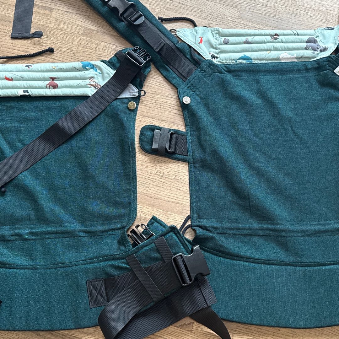 Produktinformationen "Madame Jordan TwinEase Basic - Fullbuckle Babytrage für Zwillinge ab 55/60 cm - pur emerald 'Wir sind nur noch ganz wenige' "