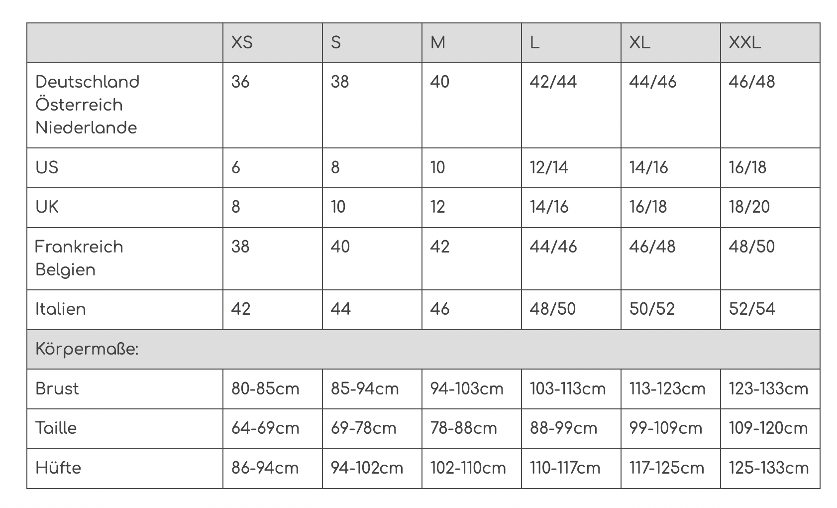 Orientiere dich an deiner normalen Konfektionsgröße, auch wenn du gerade schwanger bist, denn der Einsatz sorgt für Platz für deinen Bauch! Nach der Geburt passt dein Baby dank dem Einsatz bis zu 2 Jahre mit unter die Jacke.