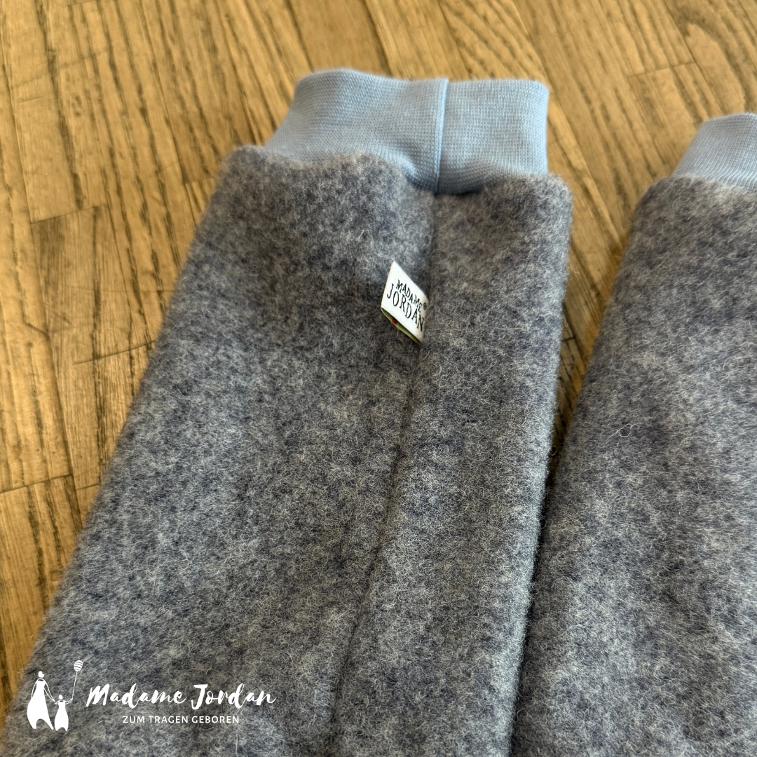 Material: Wollfleece aus 100% Merinowolle & Bündchen 95% Biobaumwolle, 5% Elastan