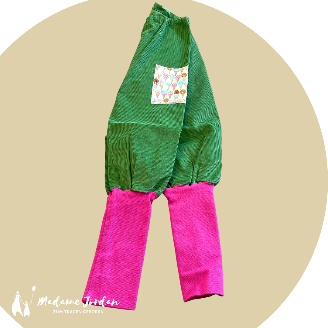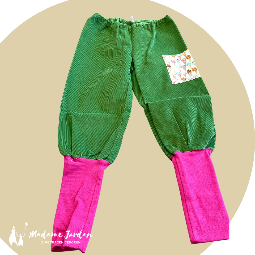 Unsere Knickebocker ist ein absolutes Must-Have .. bequem, mitwachsend und perfekt für kleine Sammler. In der Tasche finden die wahren Schätze ihren Platz . Die Hose ist für Stoffwindeln und/oder zum Babytragen entwickelt und unterstützt die Autonomie deines Kindes, da sie die Hose sehr schnell selbständig anziehen können. Kein störendes breites Bündchen am Bund. Über ein Knopfloch kann der Gummi einfach ausgewechselt oder auch enger/weiter gemacht werden. Dadurch ist sie sehr langlebig und übersteht mehrere Kinder.