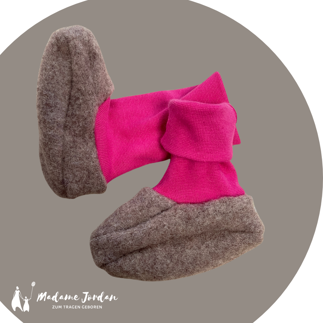 Produktinformationen "Wollschuhe - Trageschuhe sand / pink Gr. S"