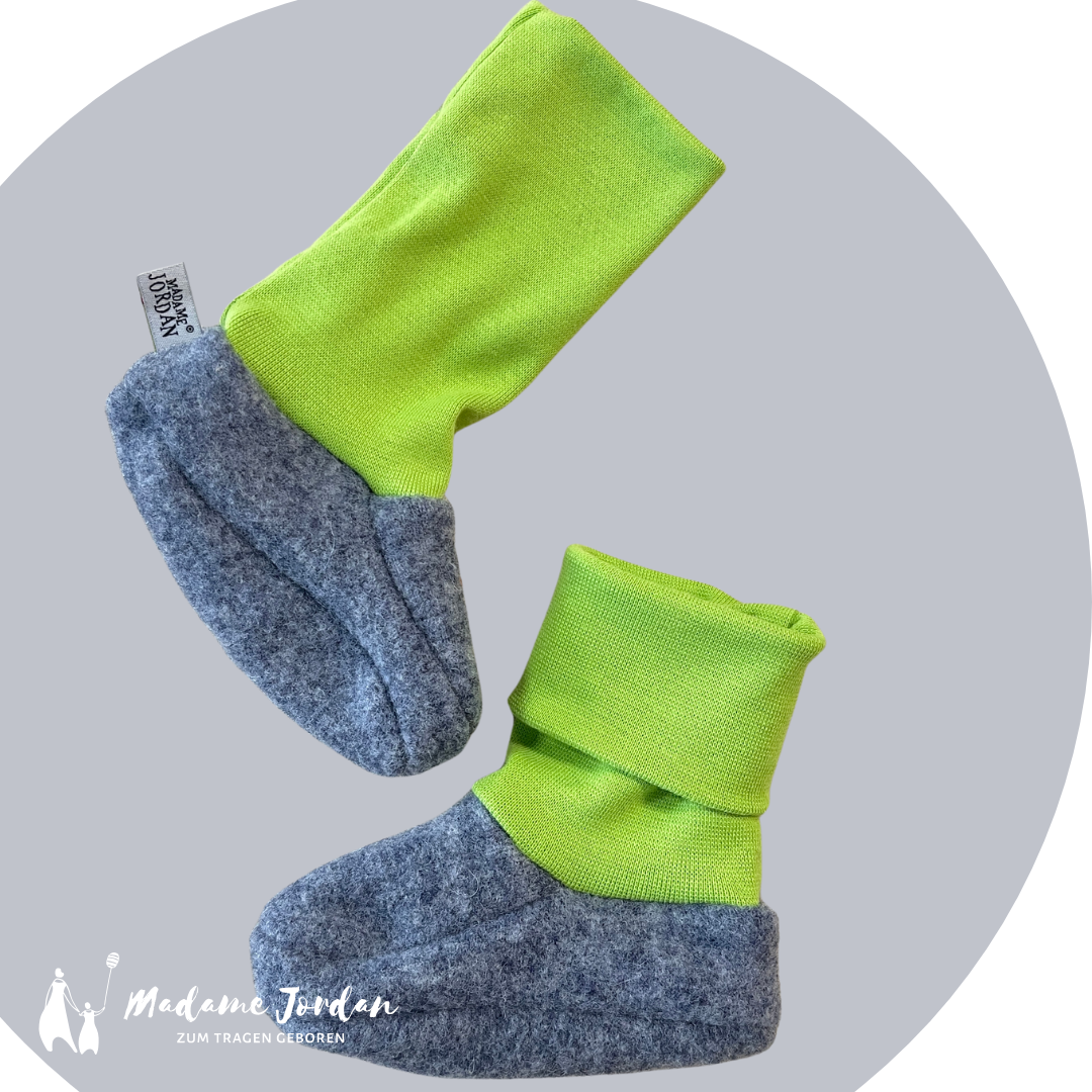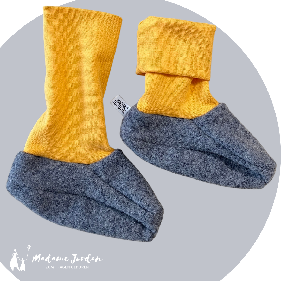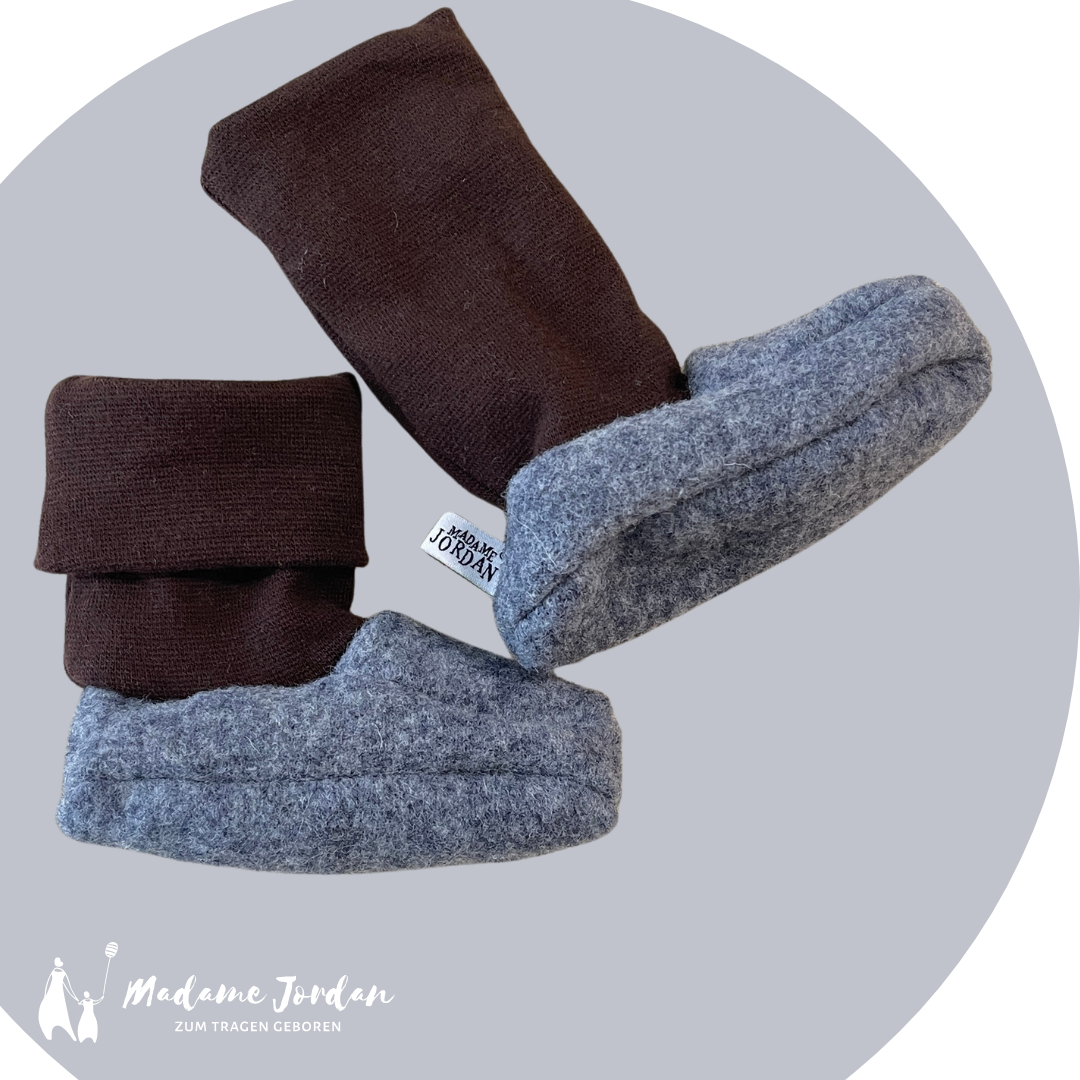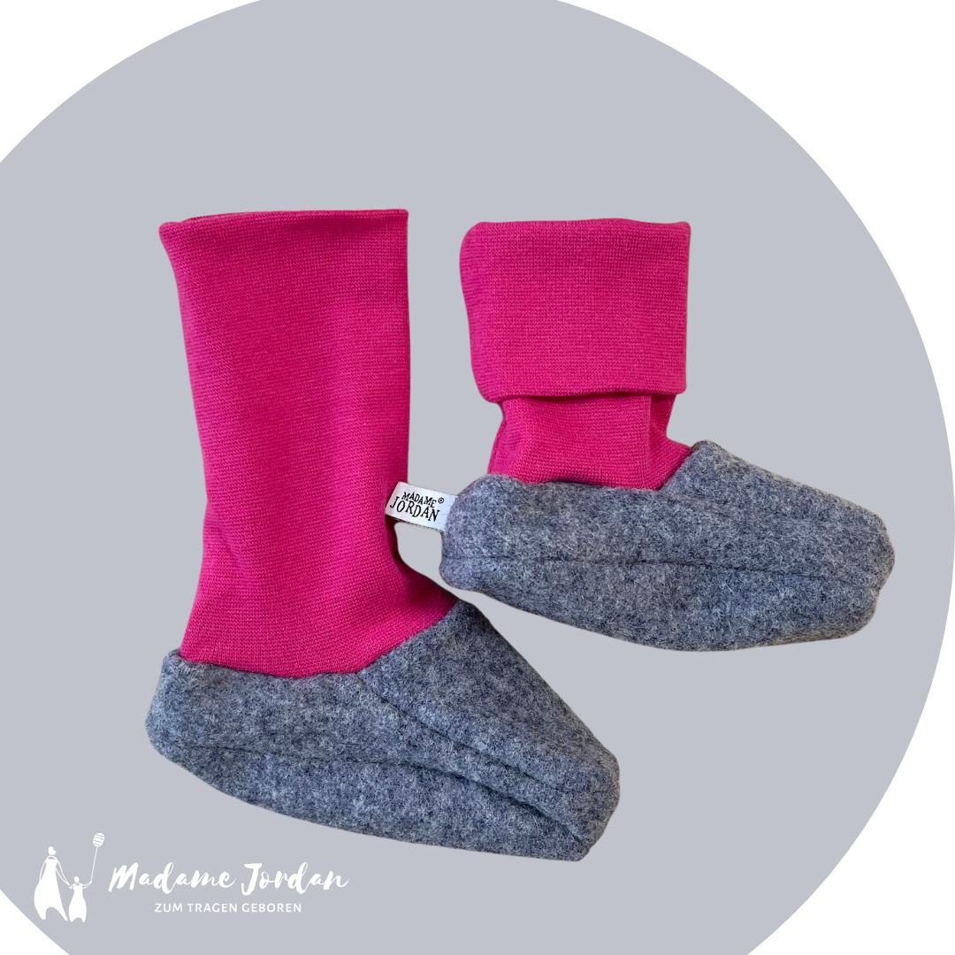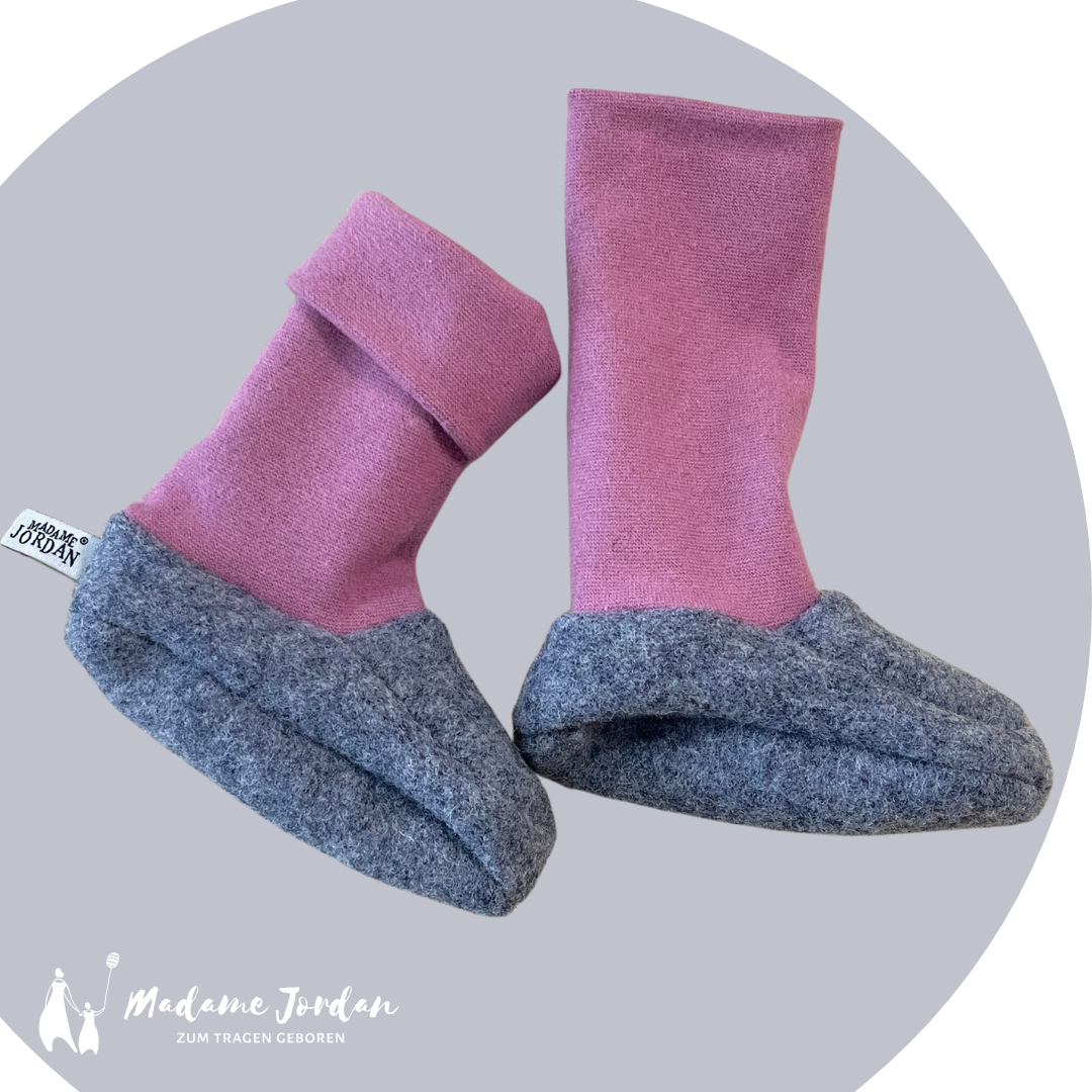 Hinweis: Hast Du das Gefühl dein Baby hat eher große Füße oder sehr breite, dann nehme bitte eine Größe größer. Die Schuhe bilden eine Hülle um den Fuß, um die Wärme zu halten und diese darf nicht zu eng sein!