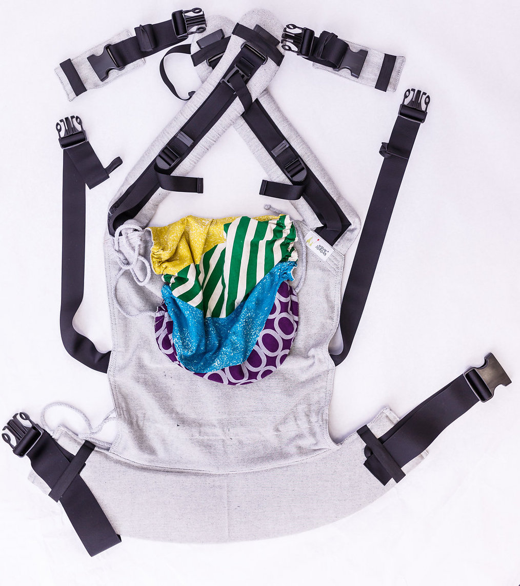 eine sehr vielseitige und super bequeme Fullbuckle Tragehilfe. Die Träger können gekreuzt also als X auf deinem Rücke sein oder gerade als H und werden dann mit einer Brustgurtschnalle verschlossen. Der ergonomische Hüftgurt kommt von unserer Wrap Conversion Mei Tai und verlangert das Gewicht deines Babys auf deine Hüfte. Dadurch werden deine Schultern und dein Oberkörper bei größerem Gewicht deines Kindes optimal entlastet. Probiere ruhig unterschiedliche Trageweisen und Positionen an deinem Körper aus.