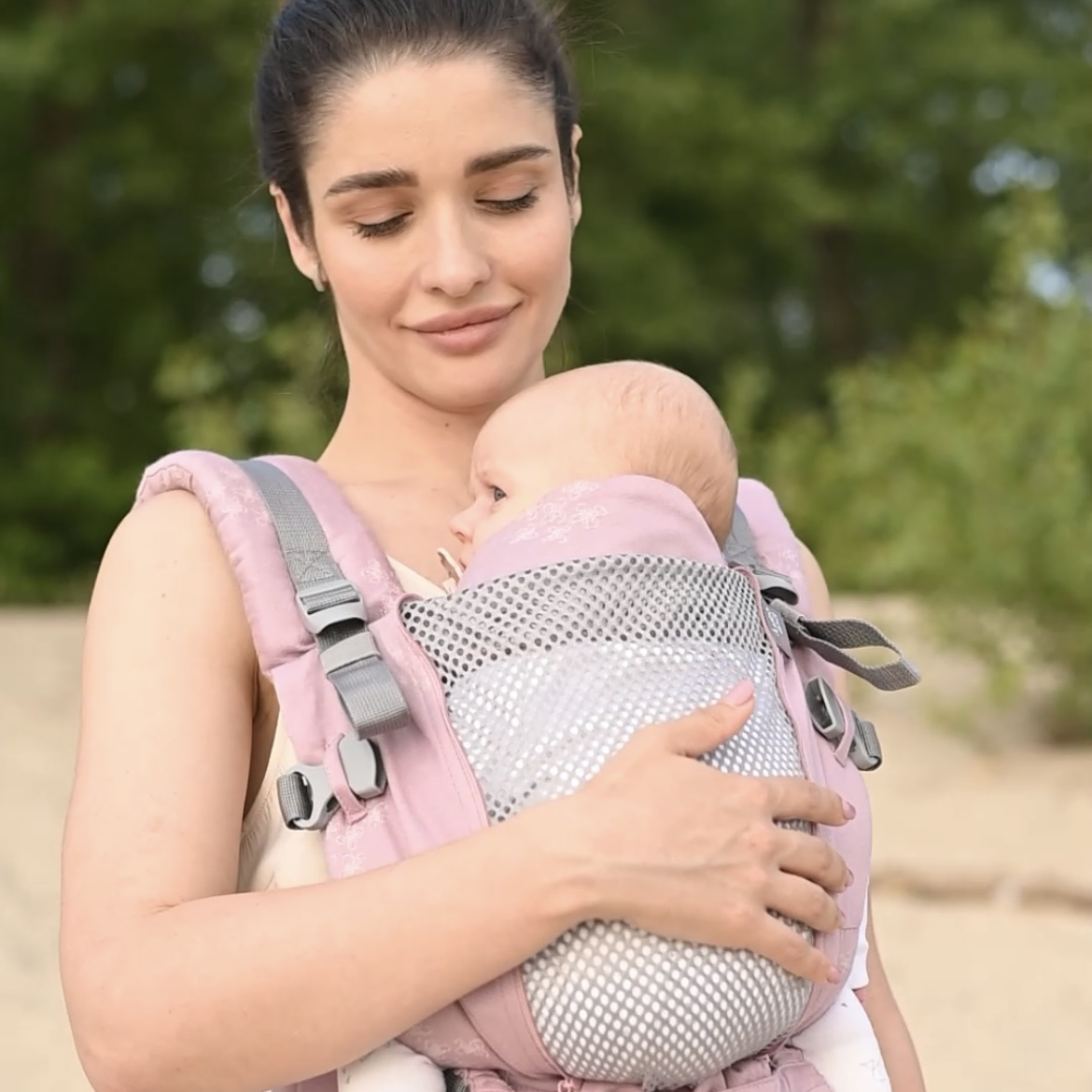 - Behält eine ergonomische Form der Hüften des Babys bei, die sogenannte M-Position
