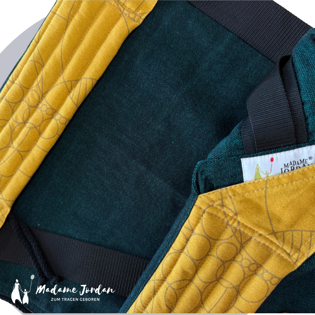Produktinformationen "Madame Jordan TwinEase - Fullbuckle Babytrage für Zwillinge - Emerald / Senf ab Geburt"