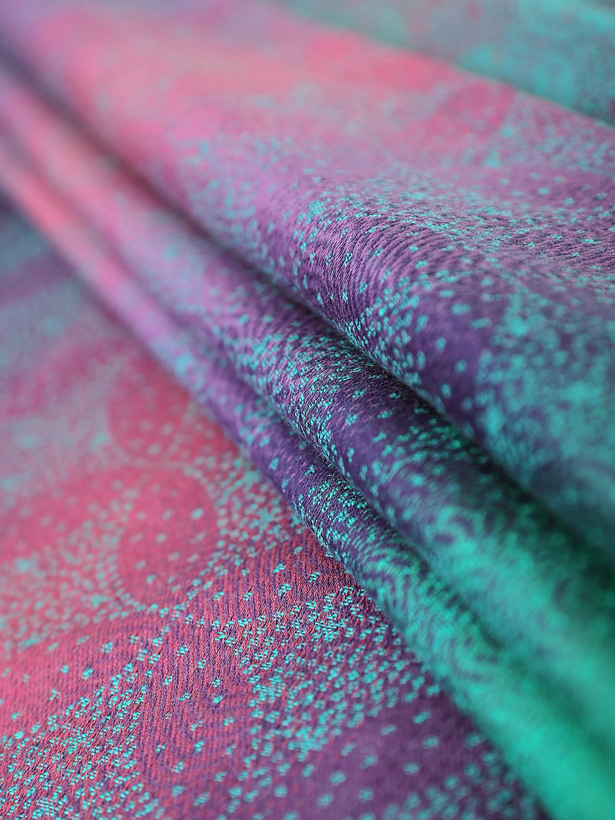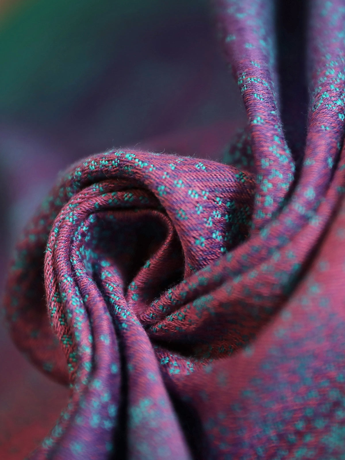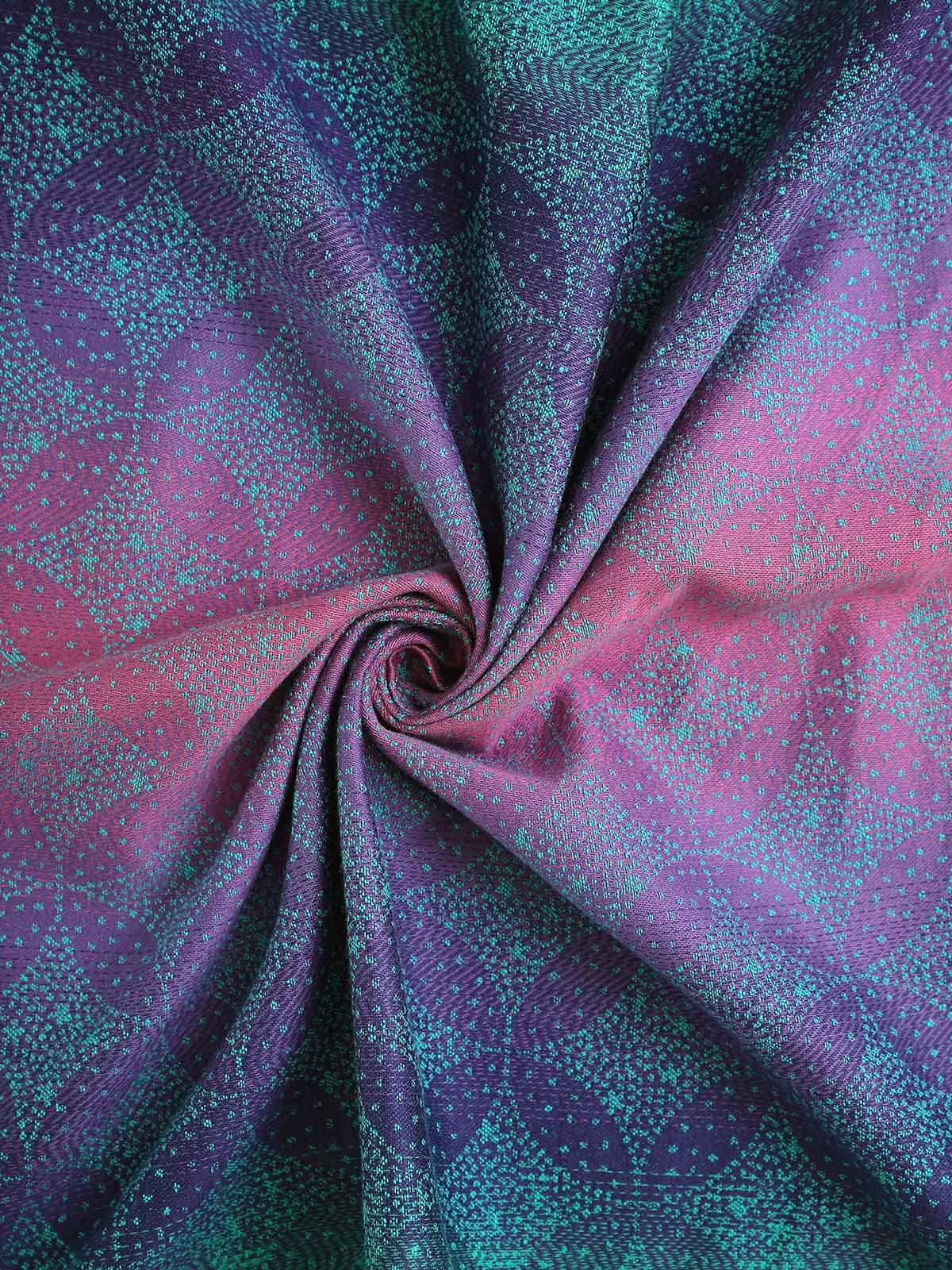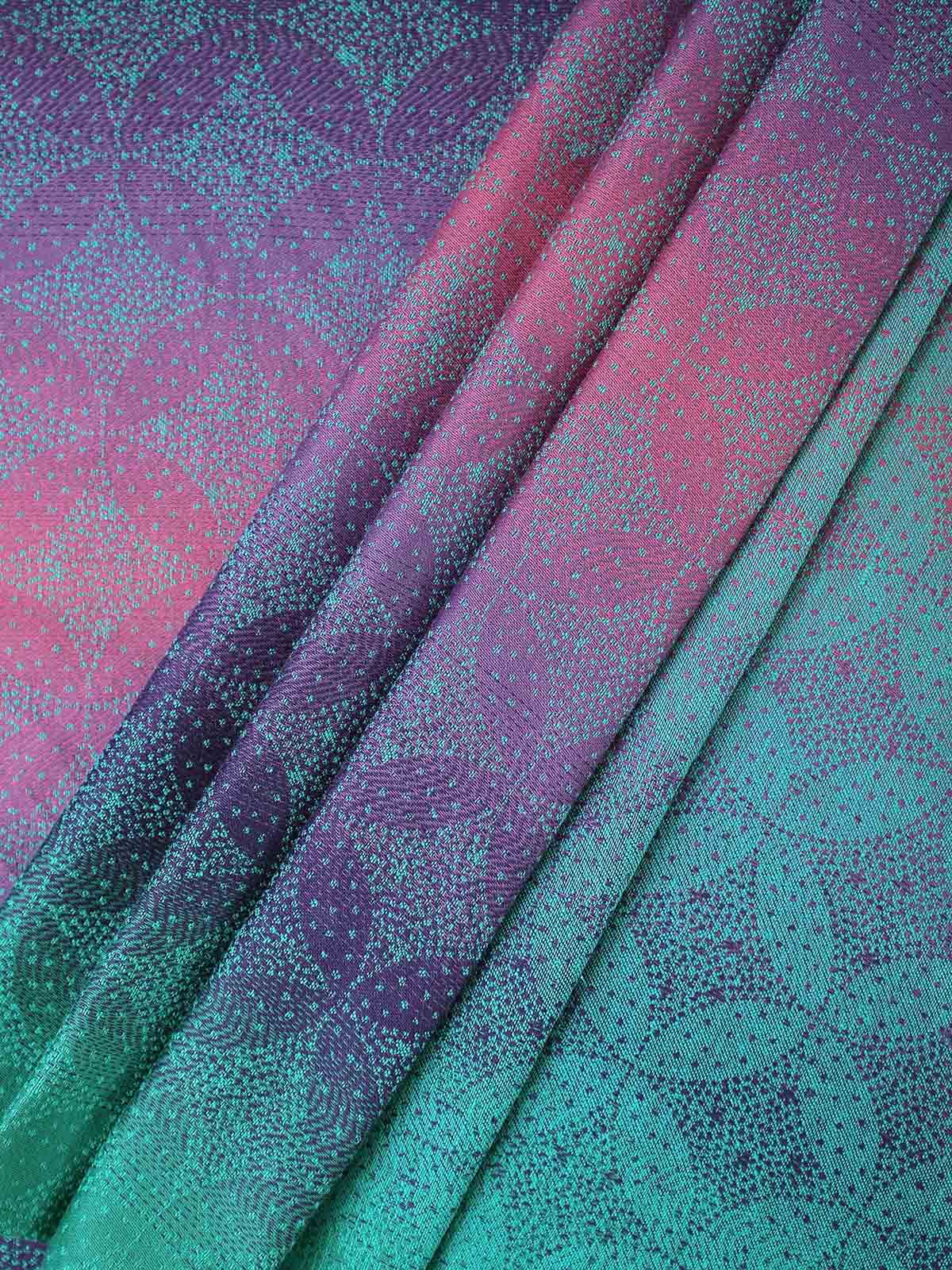 Dieser schöne Stoff ist auf einem herrlichen gespiegelten Grad aus Bio-Baumwolle gewebt, der sich durch reiche Juwelentöne von Jadegrün über tiefes Lila bis hin zu Magenta zieht.