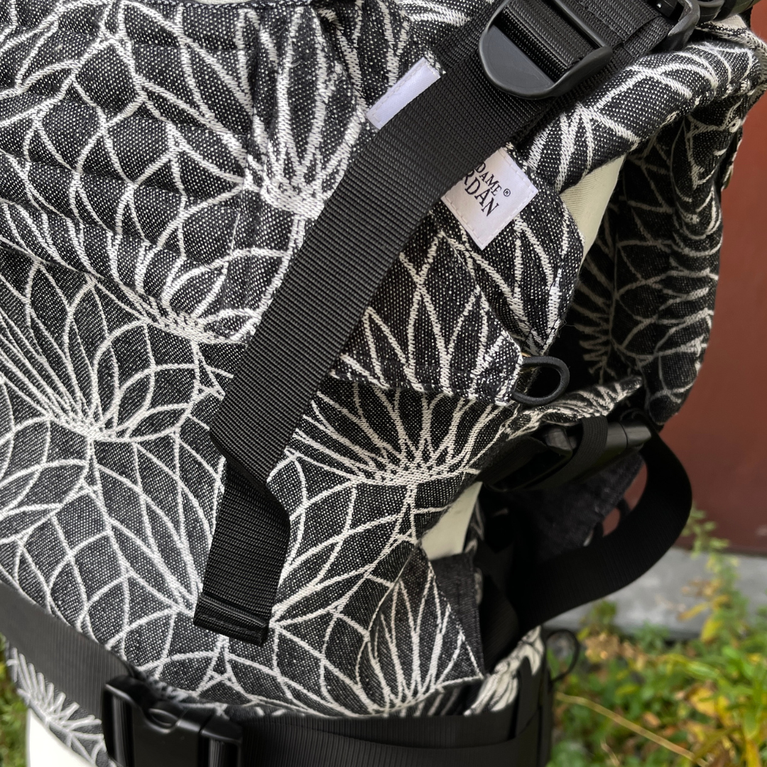 Tragetuch außen Lenny Lamb Lotus black white 100% Leinen