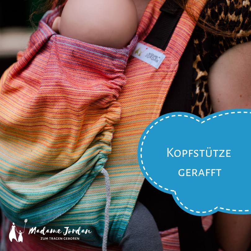 Kopfstützen: Für die geraffte Kopfstütze mit Gummi dürfen die Stoffe jedoch nicht zu dick sein. Habt ihr ein dickeres Tuch dann wählt bitte die Kopfstütze mit Tragetuchbändern, da dieses sich nich von selbst raffen kann. Du brauchst keine Kopfstütze? Dann lasst sie doch einfach weg - aber bedenkt, dass diese auch ein sehr guter Sonnenschutz ist.