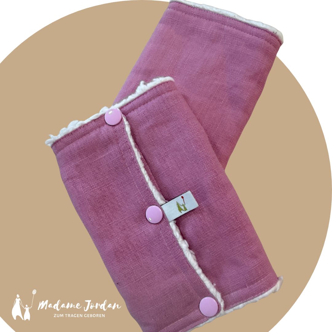 Gefertigt aus natürlichen Materialien, wie Leinen, Baumwollfleece oder Teddyplüsch, sind die Gurtschoner angenehm weich und gleichzeitig robust. Dank des wendbaren Designs kannst du sie flexibel einsetzen und variieren – praktisch im Alltag und schön anzusehen.