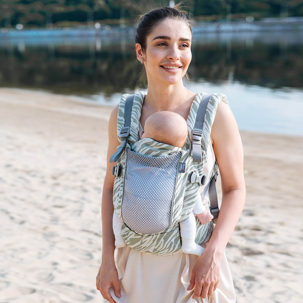 - Behält eine ergonomische Form der Hüften des Babys bei, die sogenannte M-Position