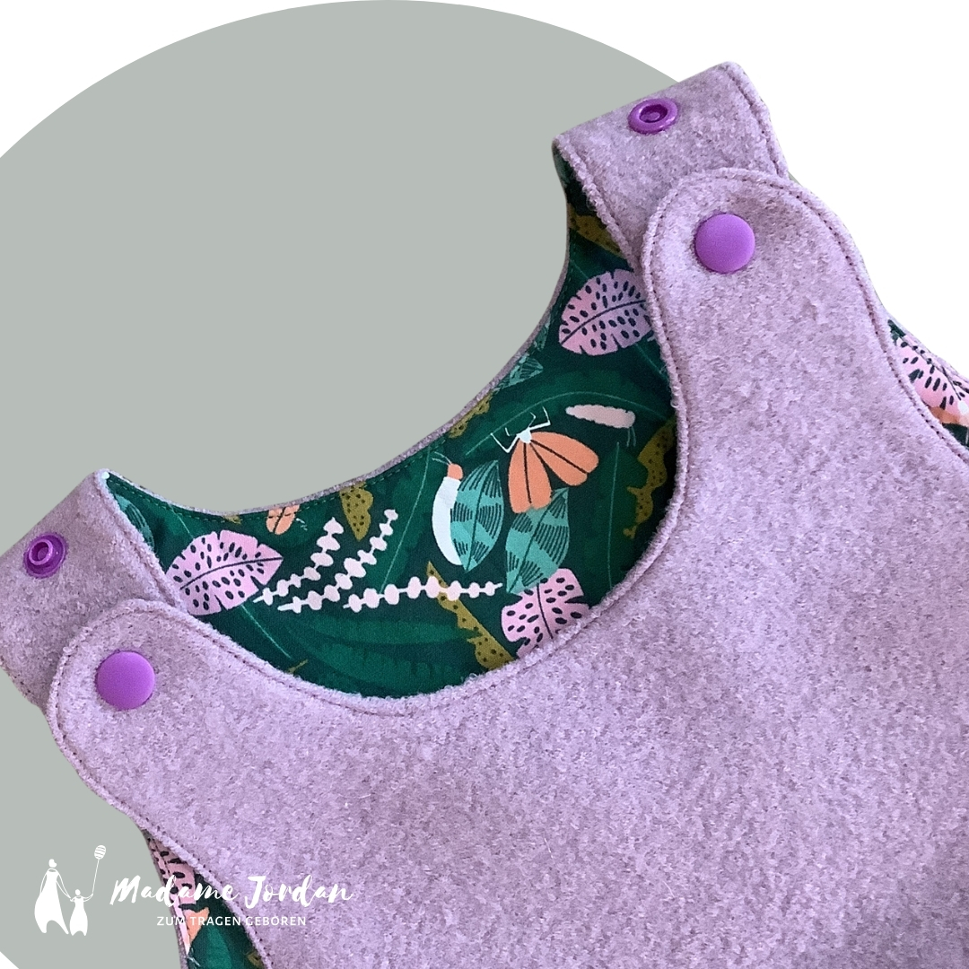 Dieser Strampler ist ein echtes Lieblingsteil für die Tragezeit: aus dünnem, weichem Merinowollfleece gefertigt und innen mit Baumwolle gefüttert – für ein angenehmes, ausgeglichenes Trageklima direkt auf der Babyhaut.