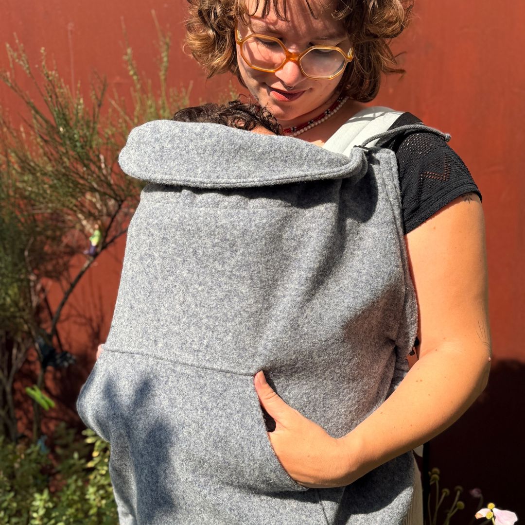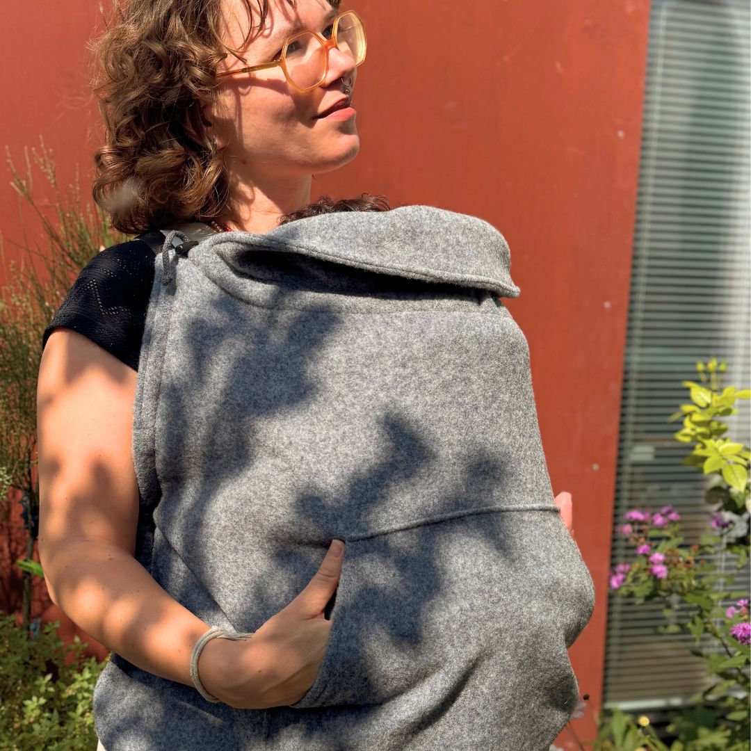 Produktinformationen "Madame Jordan Tragecover - Wollfleece - Grau für alle Babytragen & Tragetuch"
