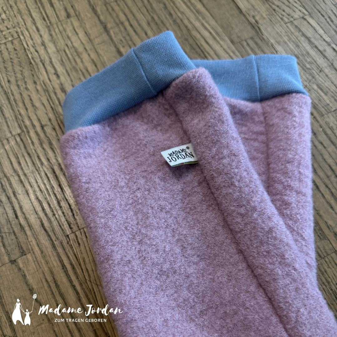 Material: Wollfleece aus 100% Merinowolle & Bündchen 95% Biobaumwolle, 5% Elastan